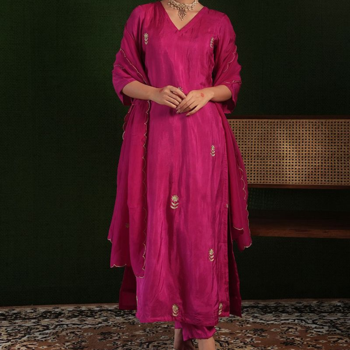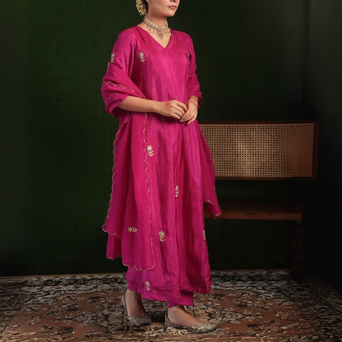 Elevate your ethnic wardrobe with this beautiful Women’s Suit Set with Dupatta, perfect for every festive occasion, cultural event, or casual outing. This elegant three-piece ensemble includes a stylish kurta, comfortable bottom, and a matching dupatta that adds grace and charm to your overall look.