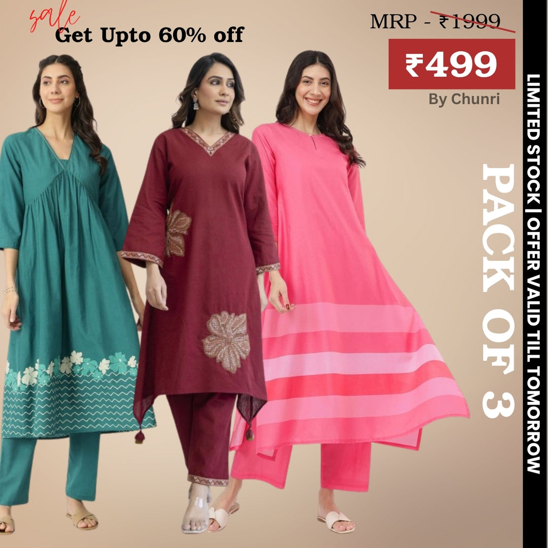 3-Piece Womenâs Palazzo Kurti Set | Fusion of Comfort and Style for Any Occasion | KS-03